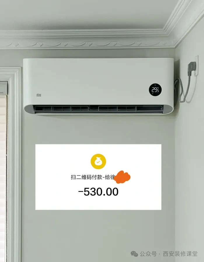 网友@猫阿狗:空调1柜机4挂机,踩坑终究是虽迟但到。一开始喊了师傅来了一趟,看定点打孔位置想提前装外机和埋管,并且安排了其他师傅帮忙打孔,但那天小米师傅只做了客厅埋管,并且第一次已经收费820。 第二次安排上门的时候,直接报价上图要收费2120,合着一万出头的空调安装费要近三千,做了心理准备还是破防了。