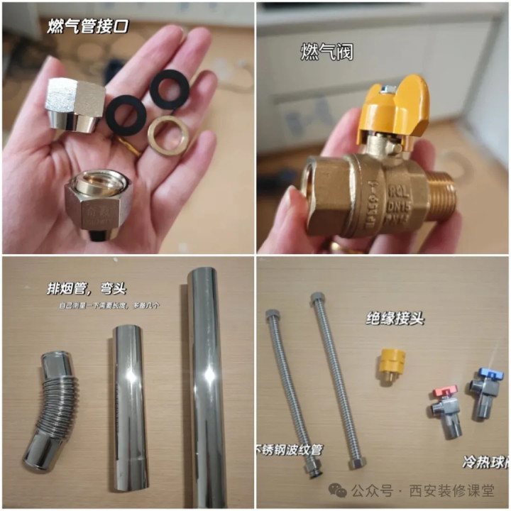 网友@泡泡:师傅说: 公司要求不能安装业主自购的绝缘接头(网上15卖你60块),球阀(网上75一对卖你100块),燃气阀(网上30卖你60块),燃气管泥工当时有预留,但是接口弄丢了55块,烟管弯头30块一个用了4个,最后只有自购的波纹管用上了,安装费40,最终消费435。一旦自己没有准备辅料,价格直接翻倍。